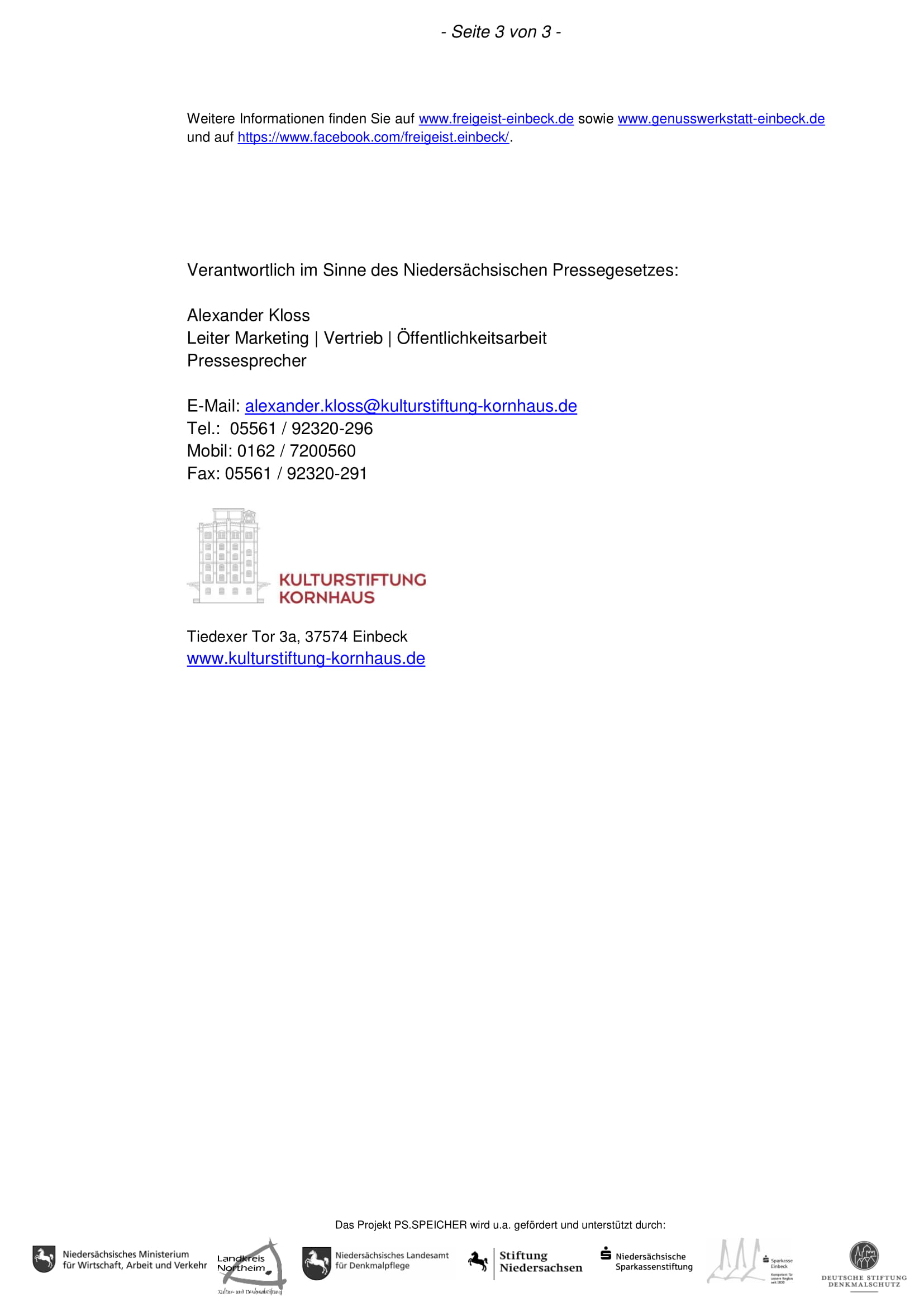 Untenstehend finden sie die offizielle Pressemitteilung zum
